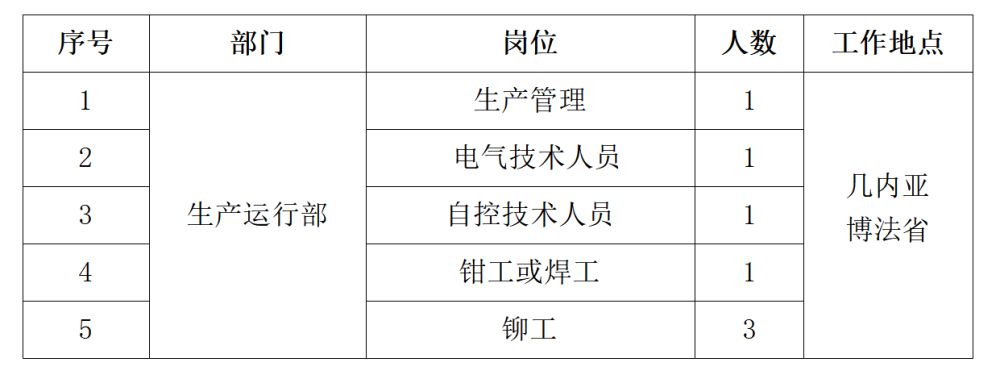 中國鋁業幾內亞有限公司(以下簡稱中鋁幾內亞)位于西非幾內亞共和國博法省,于2020年5月建成投產,2021年9月30日起正式進入商業投產,主要從事鋁土礦石的開采、運輸。根據工作需要,現面向中國鋁業股份有限公司(以下簡稱中鋁股份)內部企業公開招聘人員,現將有關事項公告如下: